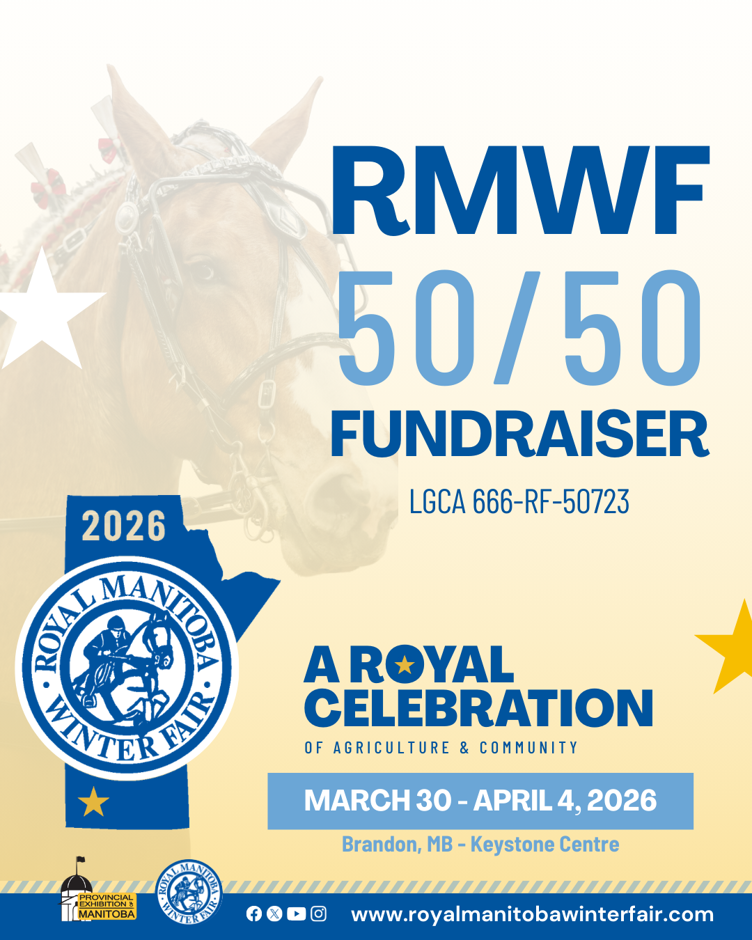 Win big while supporting the Royal Manitoba Winter Fair! Every ticket you buy for our 50/50 progressive draw helps keep the magic of the fair alive and grows the prize pool. The more tickets sold, the bigger the jackpot! Could you be our next lucky winner?